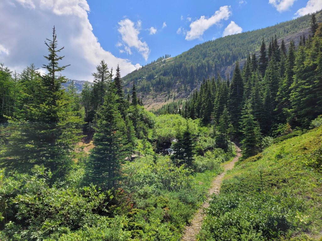 I arrived at the parking lot shortly before noon on a weekend, and there was only a single other vehicle. The parking lot is on Alberta Highway 774, between Beaver Mines and the Castle Mountain resort. The restroom in the parking lot was clean and new. In all, I think I encountered 3 or 4 other groups on my hike; not a busy trail.